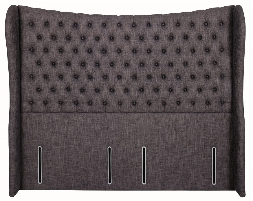 Hypnos Elizabeth headboard, 161cm high by 9cm deep, featuring stylish ‘wing’ design. Available in a range of colours.