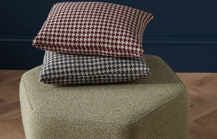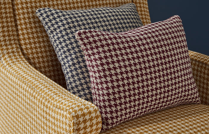 Distinctive in their designs, Brodie is a natural look, boucle upholstery collection including two classic weave designs, a houndstooth and herringbone. These classic weaves have been given a contemporary facelift using a diverse colour palette. Brodie ranges from architectural and design-led colours to more intense brights, offering the flexibility to both coordinate with subtle tones and add bold pops of colour.