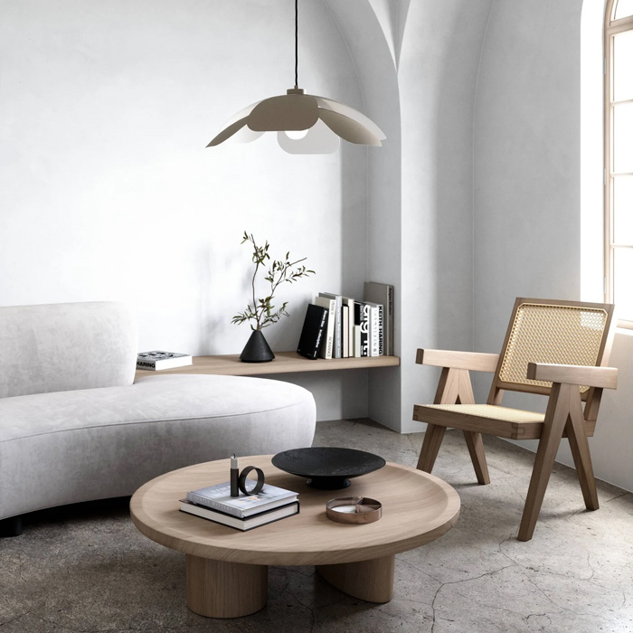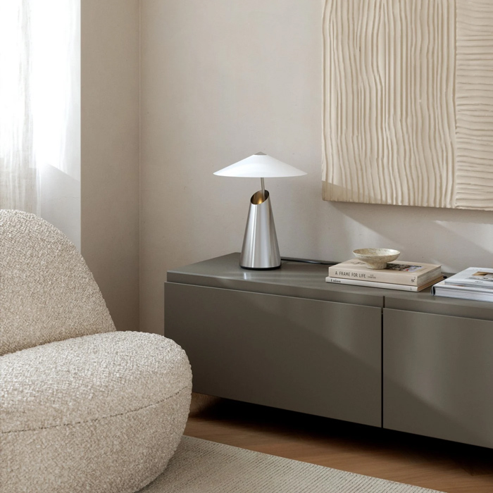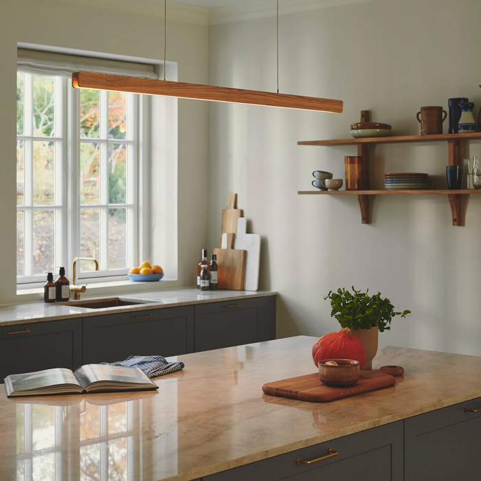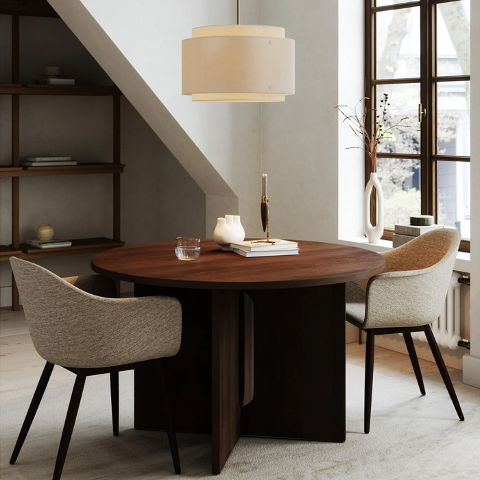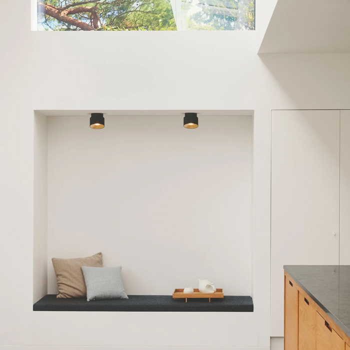 Personally, I really like working with opal glass. I can’t think of a material that gives a better light diffusion and glare free effect with a beautiful smooth colour. I also really like Fabric shades in a natural tone to soften the light output.