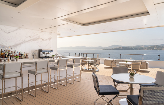 When discussing how the design invites guests to soak in the azure waters and coastlines it sails, Chris Finch, Founder & CEO at AD Associates said: