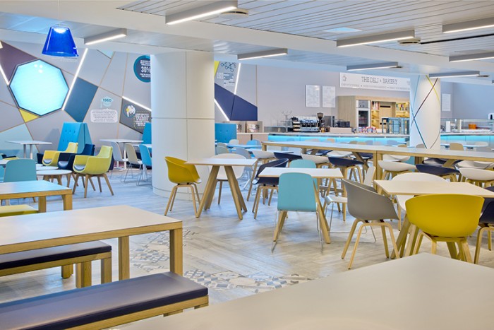 “Following extensive flood damage from a burst water main to the University of Birmingham College of Medical and Dental Sciences’ catering facilities, design specialists, SoVibrant was commissioned to redesign the basement food court, which covers an area of 9,500 sq ft and seats approximately 360 people at any one time.