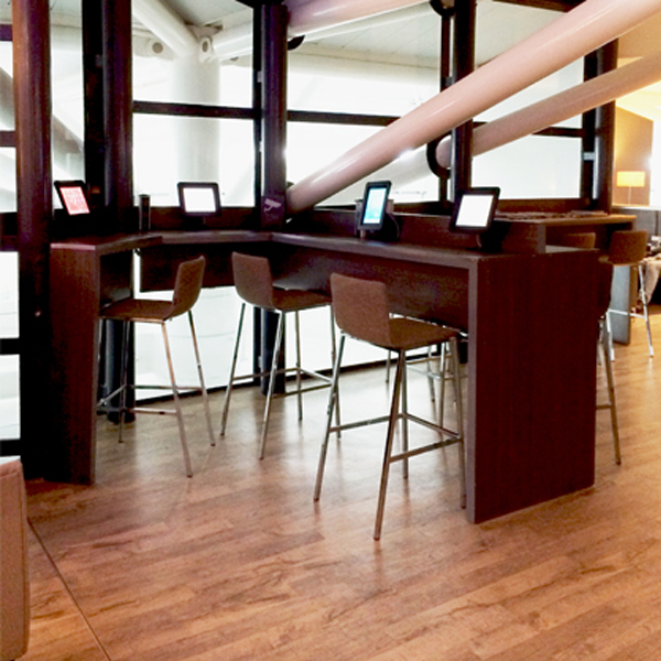Inside Out also created a bespoke Leaner Bar for the project, which was based on CAD drawings put together for the client. This impressive three-metre curved bar has a wenge finish and was paired with hard-wearing Latte Bar Stools to ensure continuity in the colour scheme across the space.