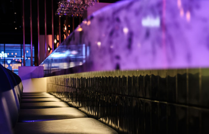 The finish Busy Carrata from Versital was chosen as the statement touch. This bespoke marble bar top is very much the feature point to the venue, enabling customers to sit at the bar watching whilst their drinks are created. Copper & Ash said: