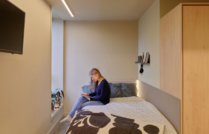 ‘This project really is a testament to thoughtful redevelopment, with the results emerging successfully from all previous challenges, including being marred by both cladding issues and poorly planned rooms. In a sense, the whole project began because of these issues, with the need to replace the building’s insulation leading to the idea of a total transformation whilst the building was out of use. That led in due course to the superior accommodation now on offer to students – as well as increased revenue for the developer, ensuring the scheme’s upgrade was for the benefit of all parties.’