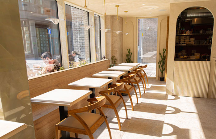 At Mule in Ancoats, Manchester, a contemporary cafe by day and ramen-come-cocktail bar by night, Jolie sought to enhance the contemporary fusion brunch and dinner menus through the use of considered day-to-night lighting scheme, soft gentle architectural curves, sandalwood aromas and colourful glassware. By combining light blush hues and terracotta shades the small interior space sparks relaxation, decompression and excitement to triple up as a favourite spot for a brunch date, 3pm cake and late-night cocktails.