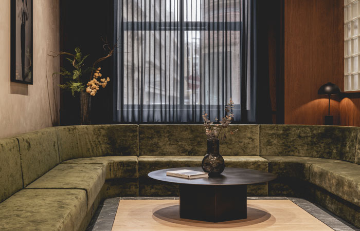 Likewise the considered use of green tones throughout the building – in the plush velvet upholstery of the lobby lounge, half height tiling in many communal areas and the abundance of foliage throughout the building – is designed to bring balance and security, helping to create feelings of optimism, health and calmness.