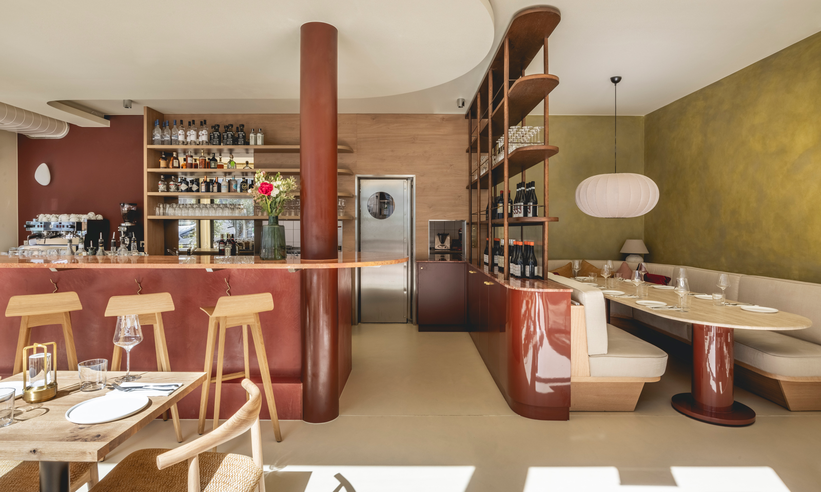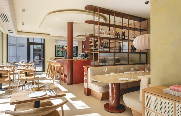“By using a palette of warm, neutral tones and textures, alongside terracotta tadelakt and timber detailing, we crafted a space that evokes warmth and balance, perfect for both the early morning coffee drinker and the evening cocktail enthusiast. The transformation from day to night is seamless, aided by ambient, glowy lighting that invites intimacy and warmth as the sun sets.”