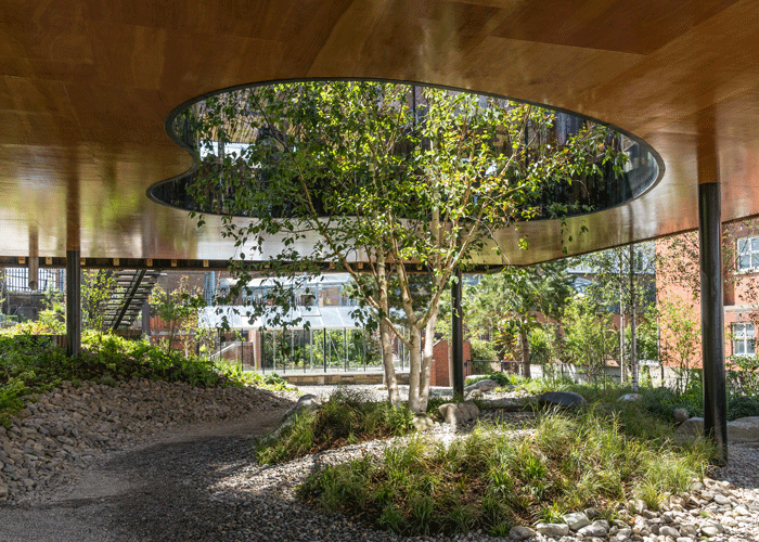 Designed by London studio dRMM, it is a wooden box on slender columns floating above a scented garden of pine, birch and tulip poplar. The space stimulates all the senses down to the small details. For example, every door handle is oak rather than metal, because chemotherapy can make cold surfaces painful to touch. The whole building connects with you in that way. A psychologist running classes there has said the building does half her job before she’s even started.
