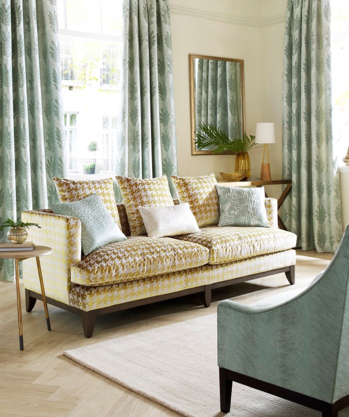 This stunning fabric collection features delicate animal inspired jacquards, luxurious embossed leaves and beautifully distressed dog-tooth velvets.