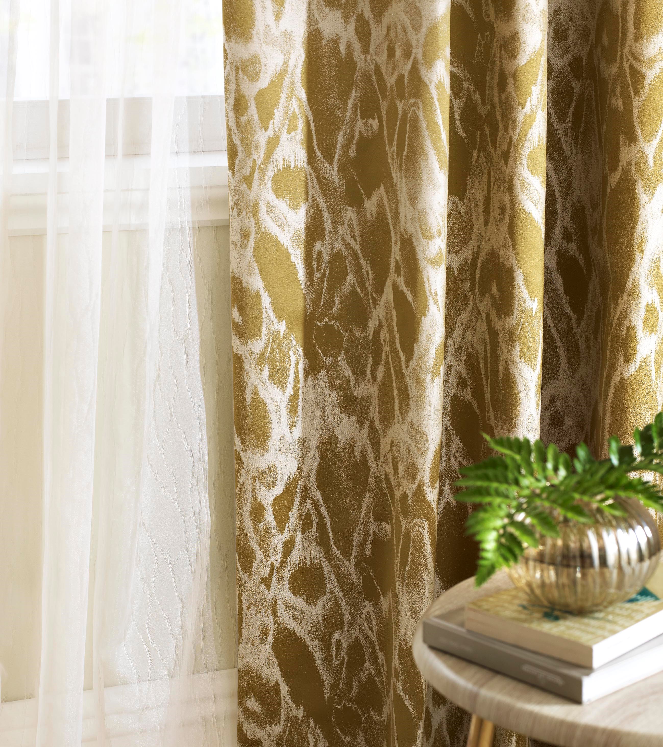 An exquisite crushed voile with animal inspired textures complements these elegant fabrics.