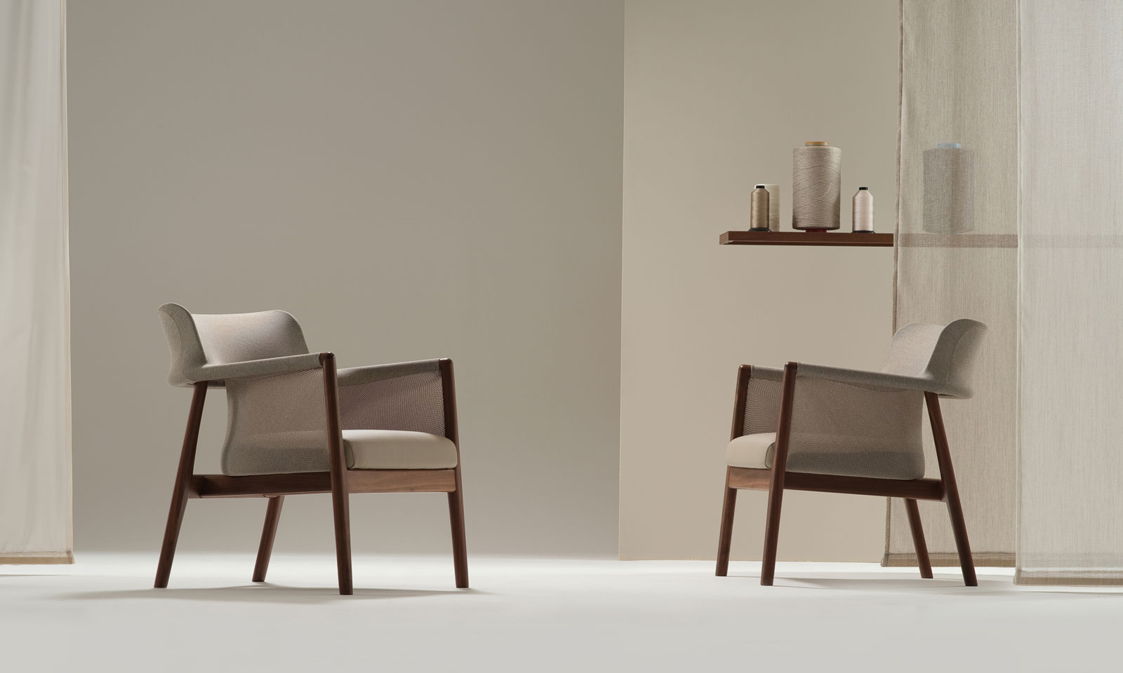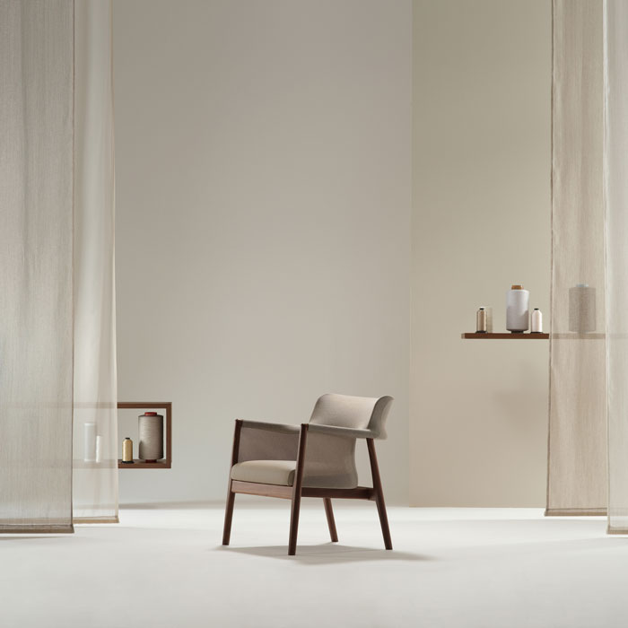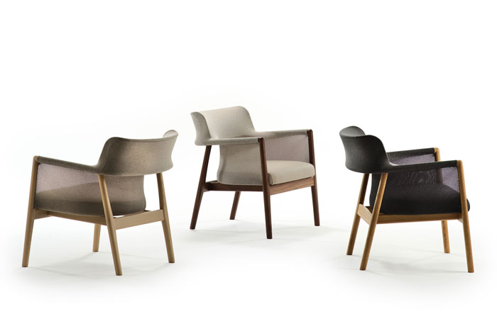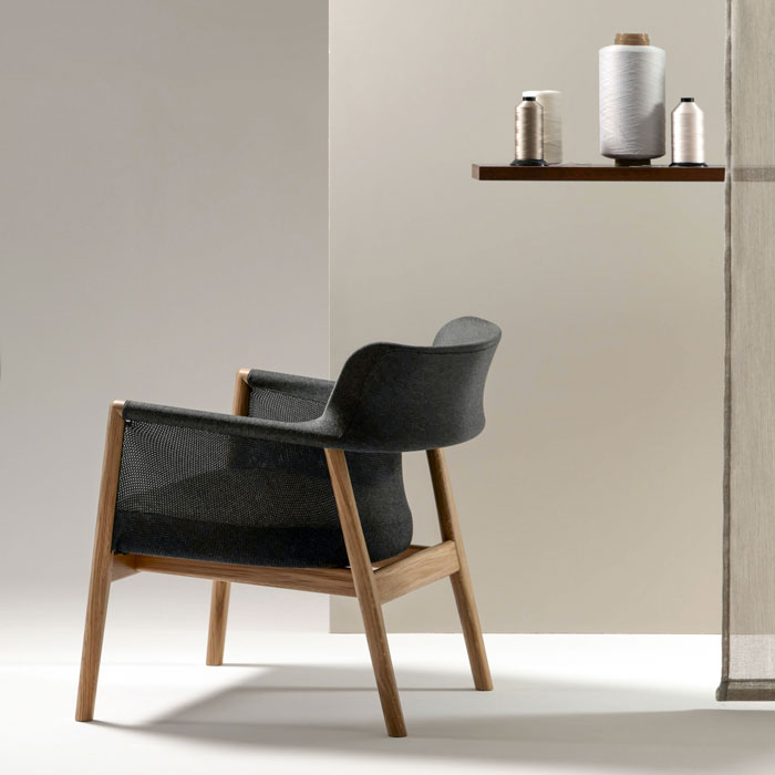 We focused on the lightness and function of the timber form for this chair as well as developing the weave and texture of the knitted component. Together with Camira’s technical expertise, and after several ‘jackets’ were trialled, we ended up with a design that achieved our brief. Visual lightness and comfort without the traditional foam construction.