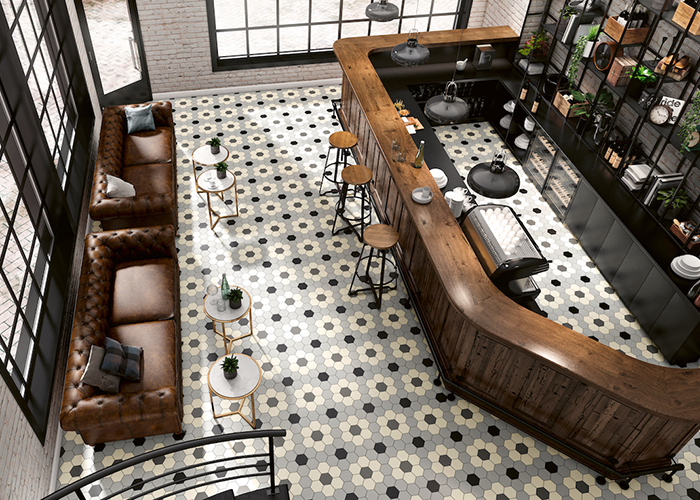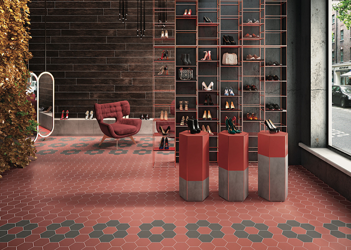 The through-body porcelain tiles are ideal for high-traffic areas including busy retail, hospitality, workplace and healthcare environments. The material and colour run all the way through the tile so scratches, chips and signs of wear are easily blended or hidden.