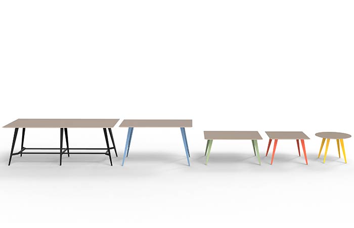 Engineered for simplicity, Zig streamlined under-structure creates is a lighter aesthetic and clearer leg space. The optional central cable management system can support desktop power and accessories if required, whilst poseur height tables can have optional footrails for added user comfort. Chamfered MFMDF worktops mirror the angled, slender silhouette of the legs whilst providing added strength and stability. Both worktops and legs can be specified in a variety of finishes to suit any scheme.