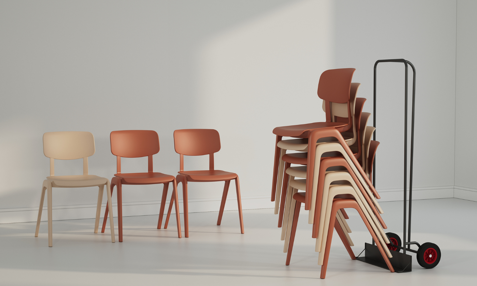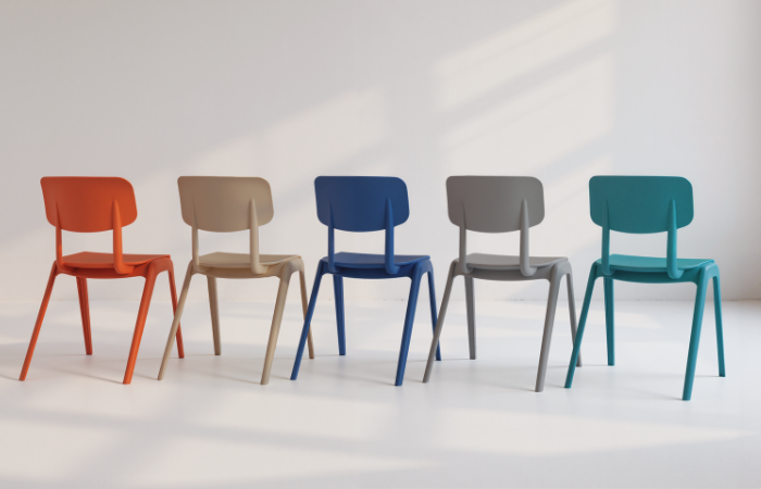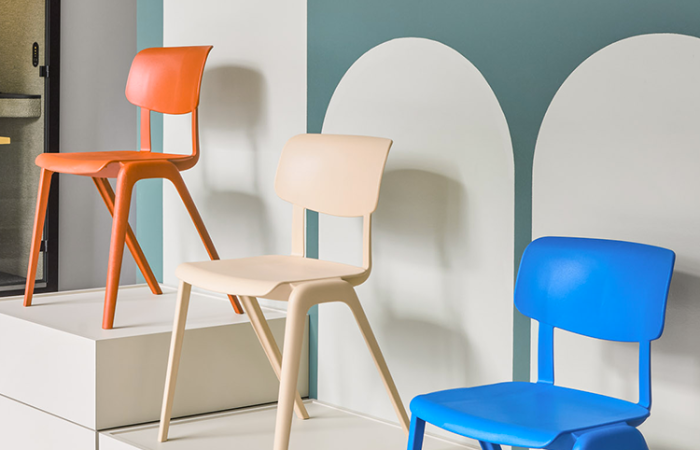 KI’s newest addition to their one piece chair collection, pays homage to the timeless mid-century school chair. Reimagined for 2025, this design classic is manufactured in the UK using modern injection-moulding to create a single, durable piece that offers strength and stability.