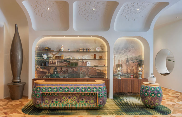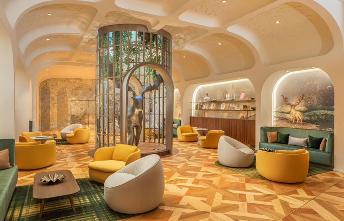 The guestrooms convey the city’s ever-changing panorama, connecting people with the place. Wanders is renowned for his unconventional and imaginative design philosophy. The hotel’s design borrows from Budapest’s rich folklore and vibrant energy, melding whimsical accents with historical elements. Enchanting patterns throughout the hotel pay homage to unique Hungarian mythological creatures and native flora.