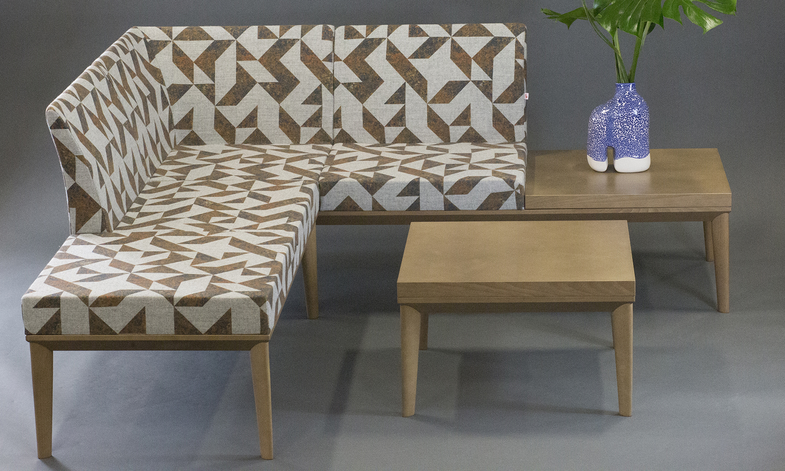 Slimline, versatile seating and tables. Limitless configurations are possible with Hadrian, a modular soft seating solution design for modern workplaces. Versatile, slimline seating for receptions, cellular offices and breakout spaces, it can also readily integrate into open plan areas to create low level space delineation. The solid beech base units can be stained in a variety of finishes and are available in 3 sizes, built around a 600x600mm module. These bases can be finished with any combination of 4 soft seating and table top elements.