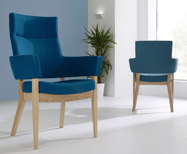 The Cubitt range provides a modern yet supportive option for ward seating, with high-back, mid-back and club variants featuring the same distinctive ‘wrap-around’ effect. A more traditional elegance is displayed by the Columba family of armchairs, where high-back and mid-back options are joined by a low-back visitor chair. Both Cubitt and Columba provide excellent lumbar support and feature sturdy arms to aid rising: hygiene gaps between seat and back prevent the accumulation of bacteria and debris, and frames are finished with an antimicrobial lacquer for hygiene-critical areas.