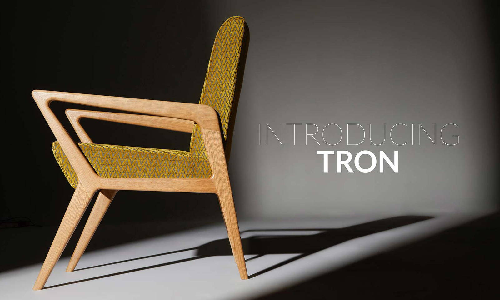 The range has been designed with clean, hard lines, in turn creating interesting geometric shapes within the chair frame and table legs. It harks back to my design style with that dynamic motion which takes your eye on a journey around the piece. The Tron collection, which is the first we have released is reminiscent of mid-century furniture of the 50s and 60s but with a strong contemporary edge. There are lounge chairs, upright chairs and tables in Dining, Occasional and Coffee table heights. Everything is customisable from the wood to the fabric to the colours.