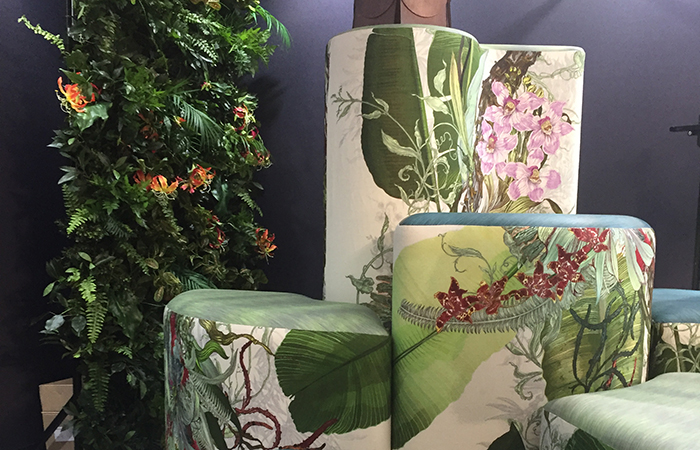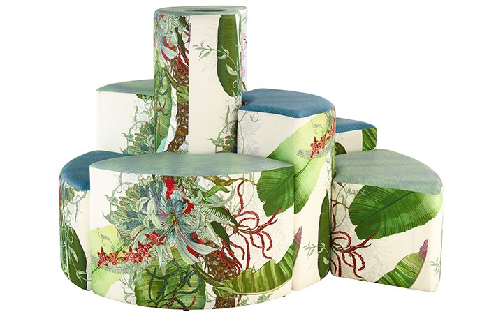 Available in a wide range of covers including practical faux leathers, biro resistant silicone, Sileather, luxurious velvets and on trend soft covers including designs from Timorous Beasties whose work embodies a unique diversity of pattern. The stunning Topical Tropical fabric from Timorous Beasties and Sileather were used to cover Climb for the Clerkenwell Design Week installation to show stopping effect.