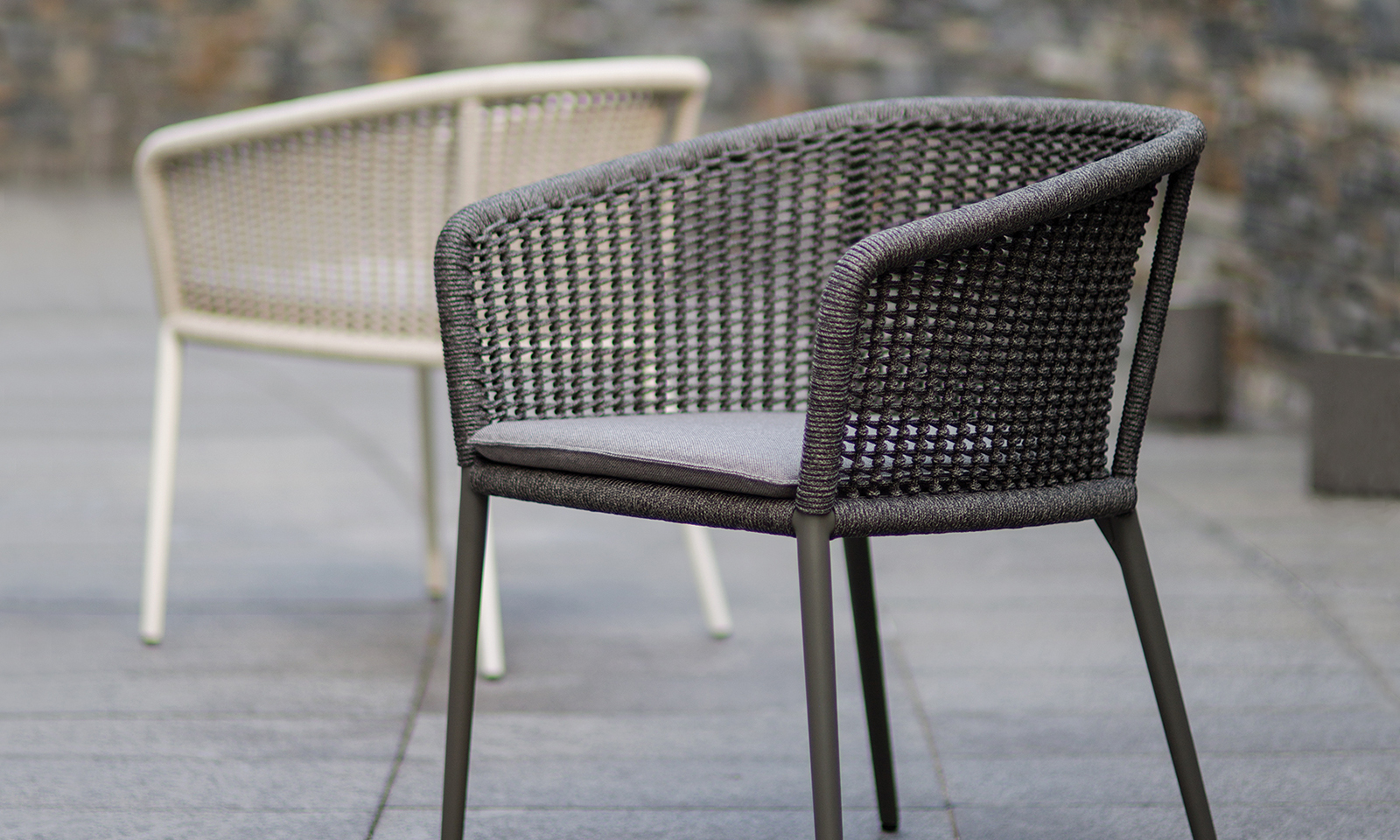 As the name suggests, Knot’s designs utilise the macramé technique of a modified reef knot to create a beautifully patterned, bucket-shaped seat. The pieces in the collection are comprised of intricately handwoven polypropylene rope supported by a durable, lightweight aluminium frame. For ultimate comfort, each piece is completed with a seat cushion and back pillow.