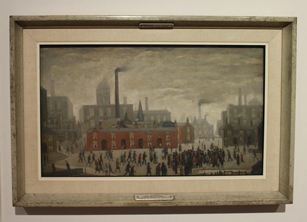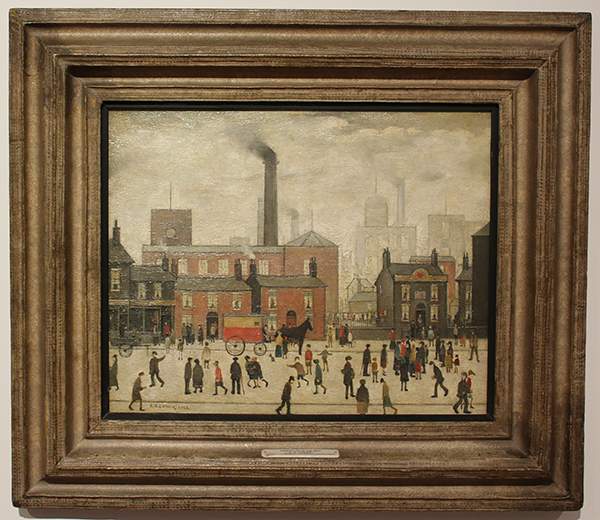 Lowry is famous for painting scenes of life in the industrial scenes in the mid-20th century. Rather than creating straightforward representations of real places, he would paint scenes that were made up of a number of different, often imaginary people and places.