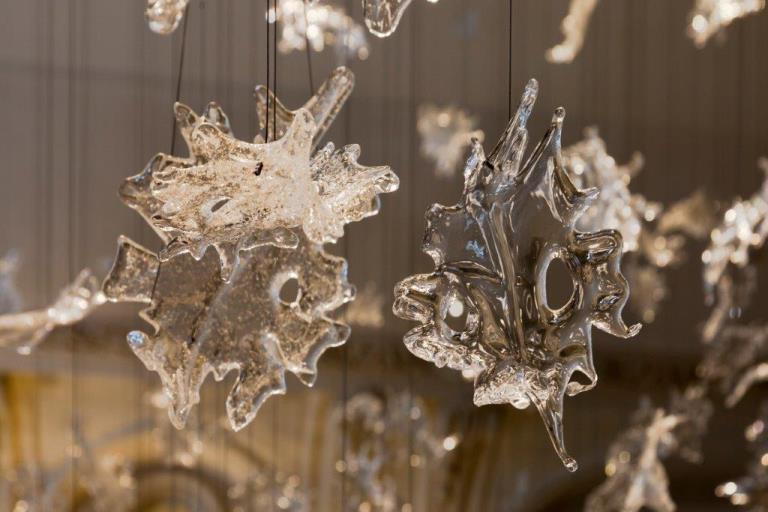 The Rotonde embellished another lighting glass sculpture designed by Jitka Kamencová Skuhravá. The sculpture called “Diamond Necklace” is made up of three oval rings of various widths and lengths in the shape of a crystal pearl necklace. The rings are made as a string of pearls and this arrangement links to traditional Czech bijou jewelry dating from the 19th century.