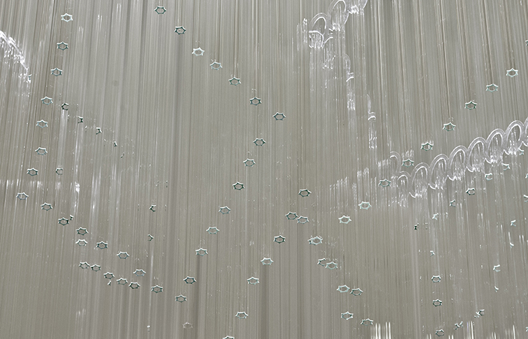 Weight: 462 kg | 36 LED lights inside the installation + 4 external reflectors | Material: optical glass tubes, clear | Number of glass components: 1647 pieces | Overall height: 7 366 mm | Dia: 1 220 mm
