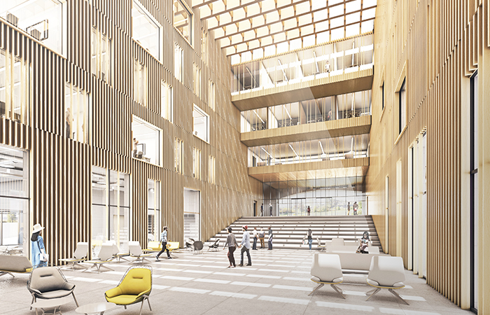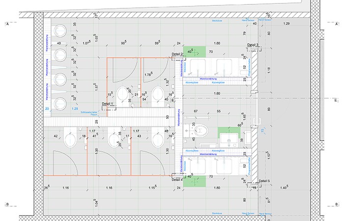 To meet the needs of almost 600 staff members and the large number of visitors, the new building project, which will be completed in spring 2019, includes 44 sanitary rooms with individual washbasin solutions, cloak rooms, changing rooms, shower cubicles and even washing facilities for the bikes. All sanitary rooms are placed at logistically convenient locations. The changing rooms, for example, are located on the ground floor, so that they will be easy to reach by bike.