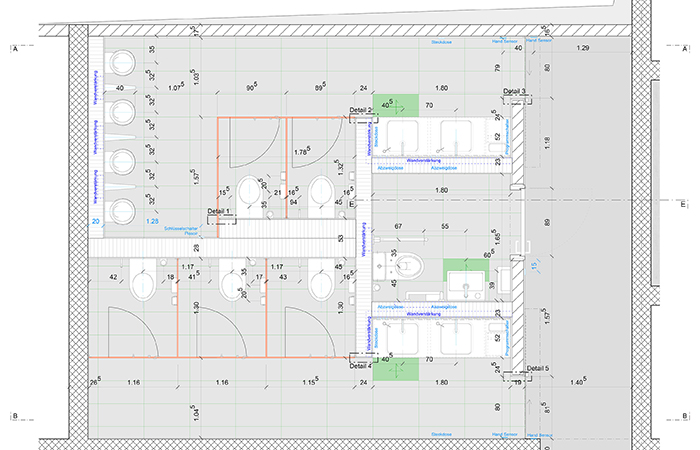 “In this project, a major concern on the part of the client was the clean, puristic design of the washbasins. The customised solution also allowed us to integrate soap and paper towel dispensers in the washbasins, thus saving us the installation of additional wall fixtures.” – Tima Kamberi, responsible for the project at IttenBrechbühl.