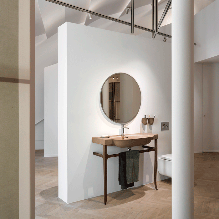 THE NEW CLASSIC by Marcel Wanders in Babylonian Sand; Sonar by Patricia Urquiola in Umber Green; ILBAGNOALESSI by Stefano Giovannoni in Burnt Orange. All images © LAUFEN