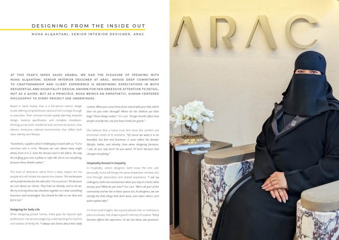 Nuha Alqahtani, Senior Interior Designer at Arac, spoke about her obsessive attention to detail, empathetic design philosophy, and how Saudi clients are increasingly open to innovation.