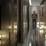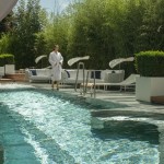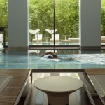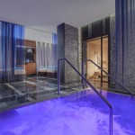 Housed in the lower ground level of the new wing and opening up to an outdoor sunken terrace and garden, Le Spa du Royal provides an urban wellness oasis that is unique in Lausanne and is open to both local people and hotel guests. The 1500m2 is a resolutely modern feature of the hotel, with dark and silvery toned finishes including Nero Assoluto marble flooring, iroko and oak timber and mosaic tiles, softened by copious shear curtaining.