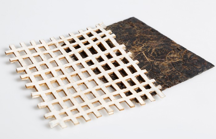 French designer Marlène Huissoud’s entire practice is centred around discovering new ways of converting substances found in nature into new useful materials, not least as an alternative to leather. Much like the process involved in making Piñatex, Huissoud’s ‘Wooden Leather’ involves a non-woven mesh and a surface coasting but in this case it’s fibres extracted from silkworm cocoons and a varnish derived from bee propolis, making the leathery material an entirely bio-based substitute for hide-based leather.
