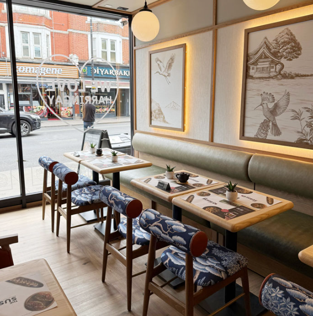 The Sushi Co took this approach even further, transforming archival prints into bespoke wall coverings that ground the space in authentic Japanese design principles. Design Command’s brief was to “create an elevated yet understated interior that enhances the freshness and craft behind the food, while remaining true to the brand’s roots in simplicity, quality and warmth.” The result uses materials and custom elements that feel genuinely connected to the cuisine’s cultural heritage.