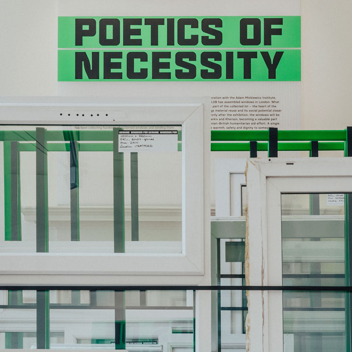 The installation is inspired by the WINDOW project – a call to action to collect reusable windows, given by Poles to Ukrainians stripped of dignified living conditions as a result of war.