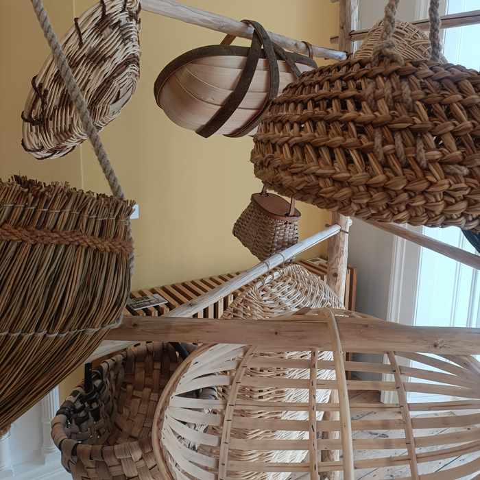 Nestled within the exhibition stood a raw timber frame onto which numerous woven baskets had been attached, drawing attention to and celebrating a range of endangered basketry techniques. Designers including Clare Revera, Michelle Mateo, Hillary Burns and Joe Hogan were invited to creatively interpret heritage skills that are unique to British Isles using materials that have been pushed to the brink of extinction in the UK, not least, Willow, Ash and Hazel.