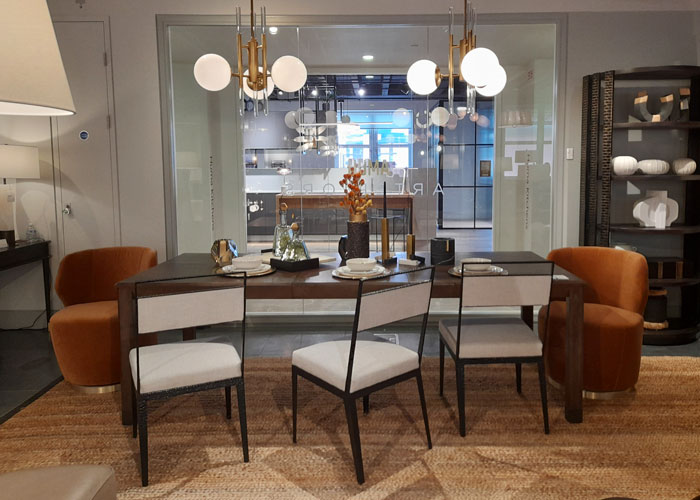 Arteriors took this event as an opportunity to introduce their visitors to their extendable Springer dining table, which complements many of the dining chairs in their portfolio. Their focus on natural materials was showcased through their round table, Redford, which utilises production timber offcuts.