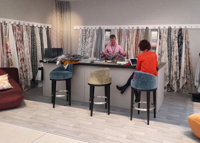 Warwick’s stand focused on the launch of 4 key commercial collections, Crib 5 Plains 1, FR Wide 1, Indienne and Cornucopia. We were excited to see a preview of their upcoming Eco Velvet and Oxford collections due to launch in coming months.