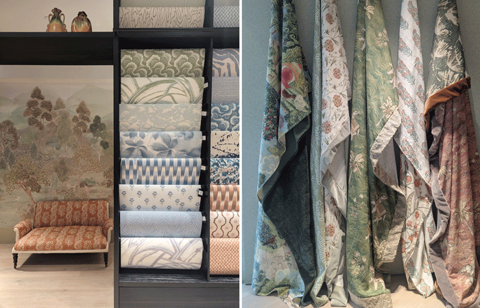 At Sanderson Design Group’s showroom, stacks of fresh product launches invited visitors to explore a wealth of new designs.