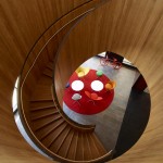 The entrance at ground floor level is marked and covered by the overhanging first-floor lobby. A colourful mural by AVAF that runs all the way up to the first floor, combined with the iconic spiral staircase, invites people to enter the building and visit the hotel.