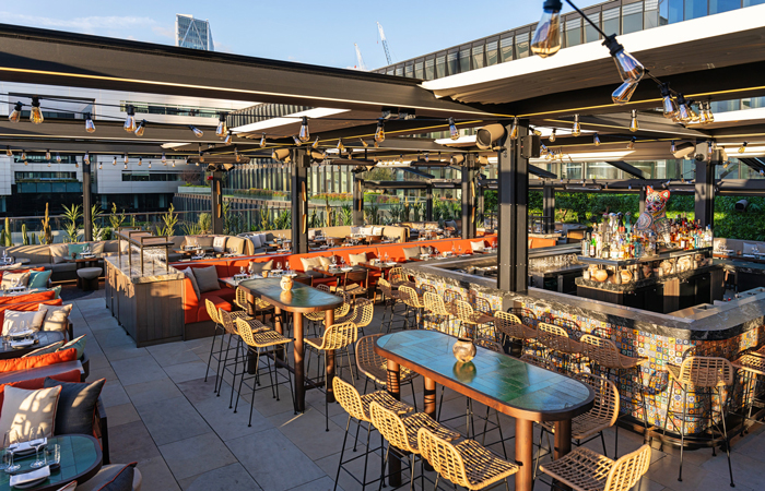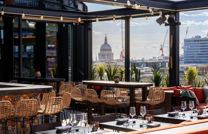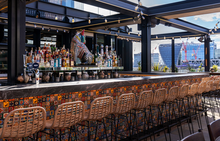 As diners continue onto the terrace, another striking bar awaits framed by hand painted Mexican Talavera tiles. Bordered by cacti and set against the backdrop of St Paul’s Cathedral and The Gherkin, the terrace will offer a fully covered and heated haven. With one of the latest outdoor terrace licences in London, diners and cocktail lovers will be able to sip sundowners al fresco until late (3am).