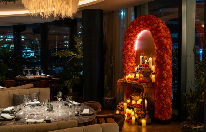 On arrival, guests will be immersed into the world of Los Mochis as they are greeted by a 24ft vibrant, hand painted mural by Mexican artist, Tellaeche. With private dedicated elevators, guests will be whisked up to the rooftop, offering breath taking views across London—from the Shard to the London Eye and St Paul’s. Diners will be greeted by a 7 meter curated Wine and Sake room before entering the Agaveria Bar & Lounge where low banquettes sweeping along the entire wall, set against floor to ceiling windows. The Lounge is the perfect vantage point to watch the sun set across the capital while listening to resident DJ’s late into the night.