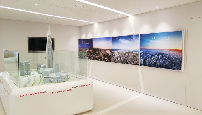 PENSON’s 23 floors are at the cutting edge of international design. The ethereal, bright, natural & airy spaces are the key to its commercial success. By adding a new branded showroom to reveal the sleek & glossy model of Lotte World Tower, PENSON have enhanced the commercial future of the tower by implementing representative intelligent and efficient interiors of the entire 123 floors. Offsetting the interiors against the backdrop of the model tower is an impressive & appealing branded visual message to all who enter. Not only does this cement the visionary interiors in cutting-edge design of the future but it increases footfall within the showroom area to prospective clients.