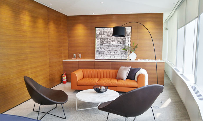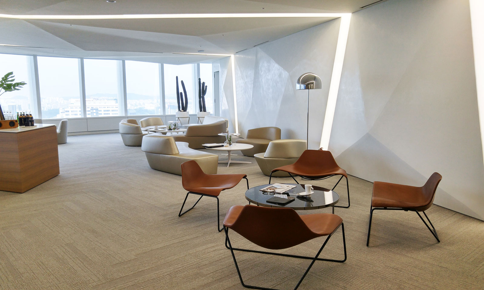 The dynamic open plan lounge areas are the perfect answer to the diversity of Lotte’s clients – facilitating the integration of ideas and influencing successful outcomes – all set in a pure environment with incredible views across Seoul.