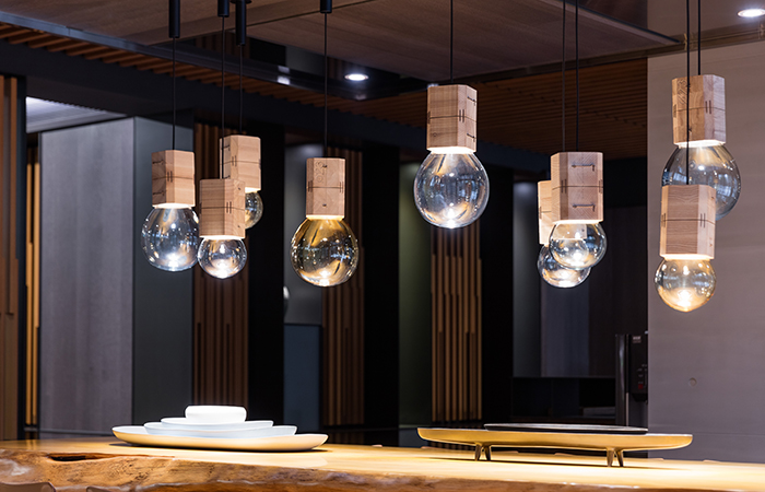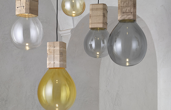 Moulds is a collection of suspended lights, showcasing Czech crystal at its most resilient and lively form. The series capture a specific moment when molten glass resists its expected shape and freely escapes from the mould as a random, amorphous bubble. The energizing effect of this series arises from the contrast of materials, using the traditional craft techniques of blowing crystal glass into a beech form. The Moulds collection brings powerful emotions into an interior. The composition of varied ‘overblown’ shapes creates a particularly striking visual effect. Integrated LED light sources were set directly within the charred form, creating an impression that the heat and energy of the glassmaker’s kiln remained inside, in historic reference to the art of Czech glassmakers.