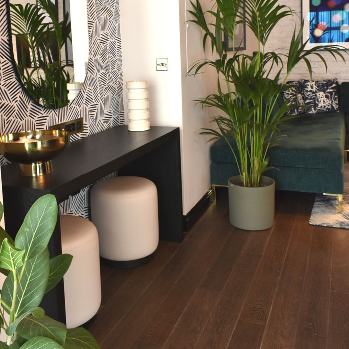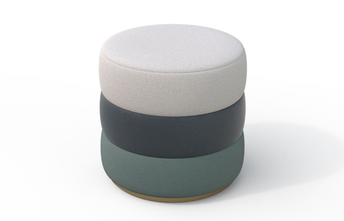 Like every piece of furniture, each Marshmallow stool has been given a lot of thought to the fabrics and finishes, in this case, a black ash veneer plinth and brass brushed nail completes the look and contrasts against the 3-tier marshmallow stool.