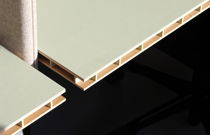 As well as a reduction in waste, there is also a growing interest in reducing the embodied carbon of our buildings, which can be aided by materials that do the same. #GREENGRIDZ, developed by Triboo, is a lightweight furniture panel built around a patented internal grid structure that delivers high strength and rigidity while remaining materially efficient. By reducing raw material use by up to 90% compared to solid panels, and lowering associated CO₂ emissions, it positions itself as a circular alternative for furniture and interior applications. What’s more, the panel is engineered to stay flat and stable over long spans—up to 5.1m—making it suited to desks, tables and large-format joinery.