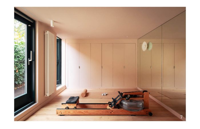 Beyond the main house, two previously unused outbuildings were repurposed as a home gym and office. In the gym, Havwoods’ Allevard flooring from the PurePlank collection was selected for its natural warmth and matt finish. The flooring helps to define the character of the room, introducing a calm and grounded environment that supports both movement and relaxation.