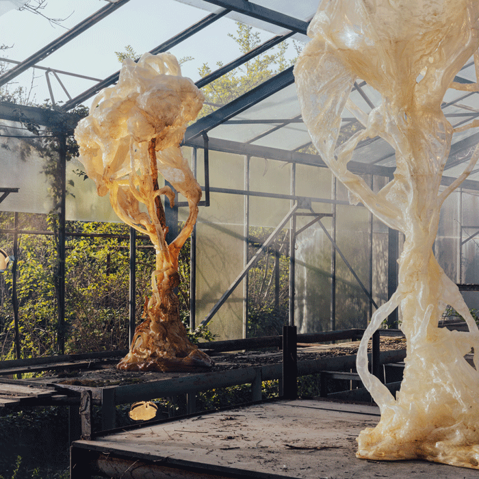 As we reported last year, one guaranteed material melting pot is the Alcova exhibition. This year the event organisers, who launched the Future Continuous exhibition at Heimtextil in January, expanded proceedings in Milan to four sites. Along with the distinctly Italian and grand venues of Villa Borsani and Villa Bagatti Valsecchi, they added some derelict rawness with the neighbouring former SNIA factory and overgrown Pasino Glasshouse. The latter was once home to one of Europe’s largest white orchid producers, which designer Marcin Rusak played homage to with a series of organic sculptural forms inspired by the rare ghost orchid. Crafted from PLA derived from cornstarch, his translucent objects wouldn’t look out of place on a sci-fi film set.