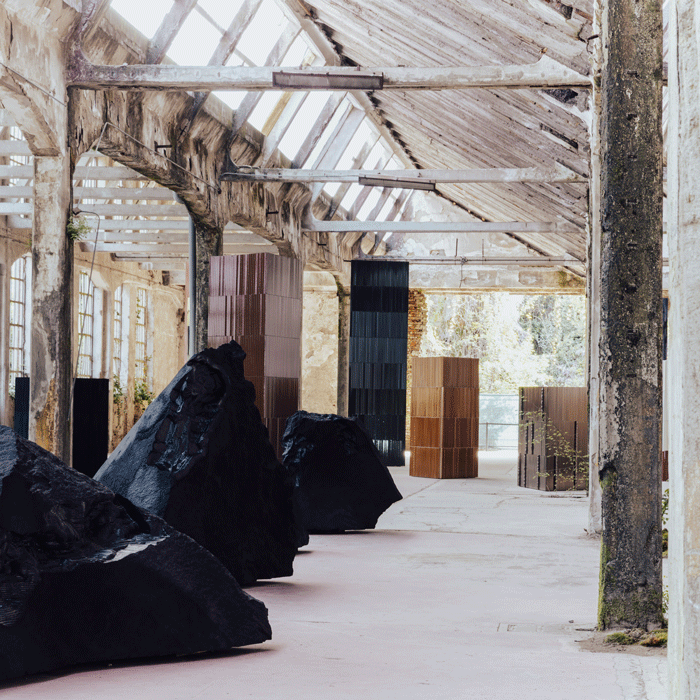 Operating from their workshop under the shadow of Mount Vesuvius, Ranieri transforms lava stone into artisan objects with an industrial edge. During Milan Design Week, they showcased Under the Volcano, an eye-catching and immersive installation that evoked the primordial power of their studio surroundings. Large angular forms of black lava algorithmically formed by artist Quayola signposted visitors to starkly contrasting monolithic cuboids. While still dark and moody in tone, these blocky forms were clad in their signature glazed lava stone tiles, which come in uniquely long and narrow formats.